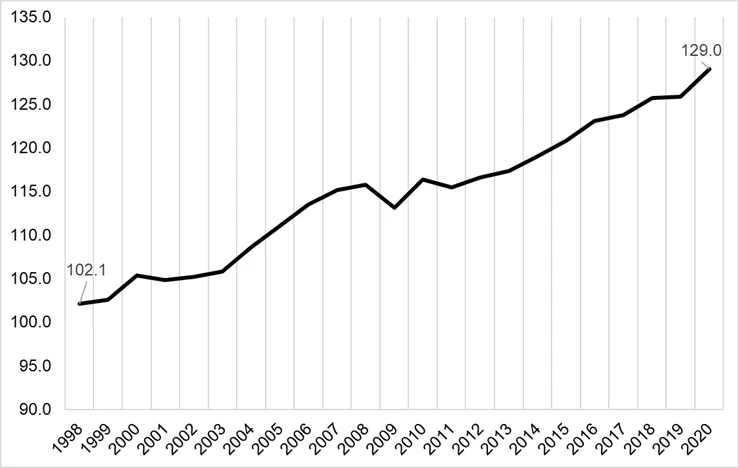 Bundesamt für Statistik, Index 1997=100, zu Preisen des Vorjahres
